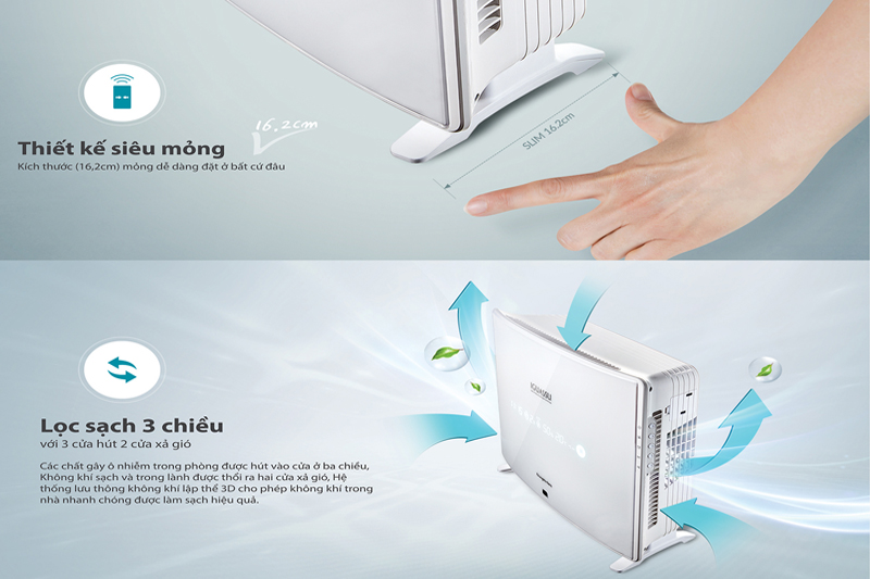 - Sử dụng màng lọc HEPA loại bỏ được đến 99,97% các hạt ô nhiễm có kích thước lớn hơn hoặc bằng 0,3 micron.