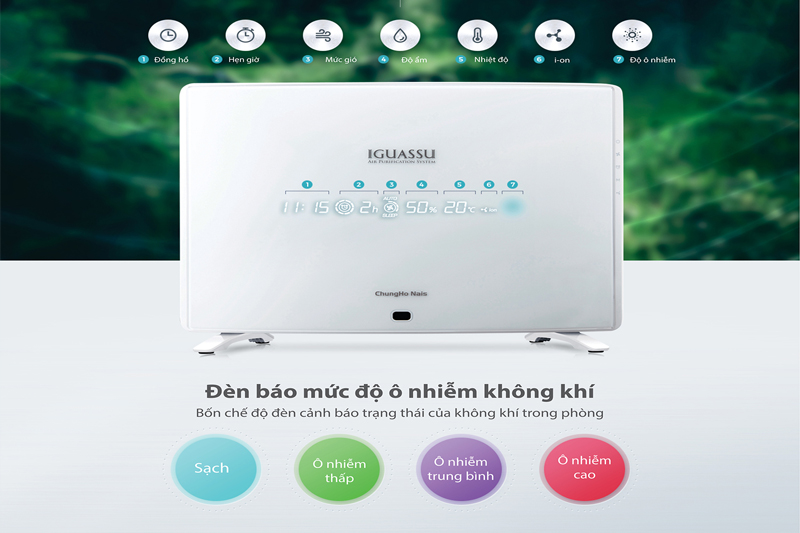 - Cảnh bảo mức độ ô nhiễm trong phòng thông qua việc thay đổi màu sắc của đèn LED