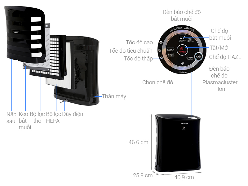 Máy lọc không khí Sharp FP-GM30E-B trang bị cơ chế bắt muỗi thông minh mà không sử dụng tới chất hóa học, cơ chế 5 bước bắt muỗi lợi dụng đặc tính của loài muỗi, chiếc máy lọc này sẽ thu hút và tiêu diệt muỗi hiệu quả, bảo vệ sức khỏe của gia đình bạn, tránh những mầm bệnh mà muỗi gây ra.