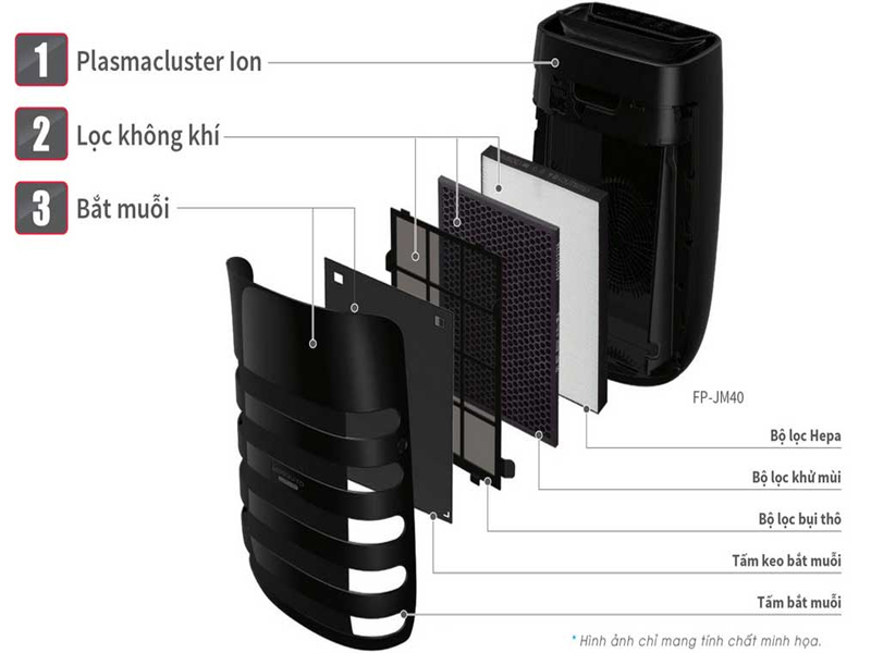 Máy lọc không khí Sharp Loại bỏ các chất gây dị ứng, vi-rút có kích thước 0.3 micro mét và hạt bụi siêu nhỏ PM2.5 (Vi khuẩn trong không khí, Vi rút trong không khí, Gây dị ứng bọ ve, phấn hoa từ cây cỏ, phấn hoa từ cây thân gỗ).