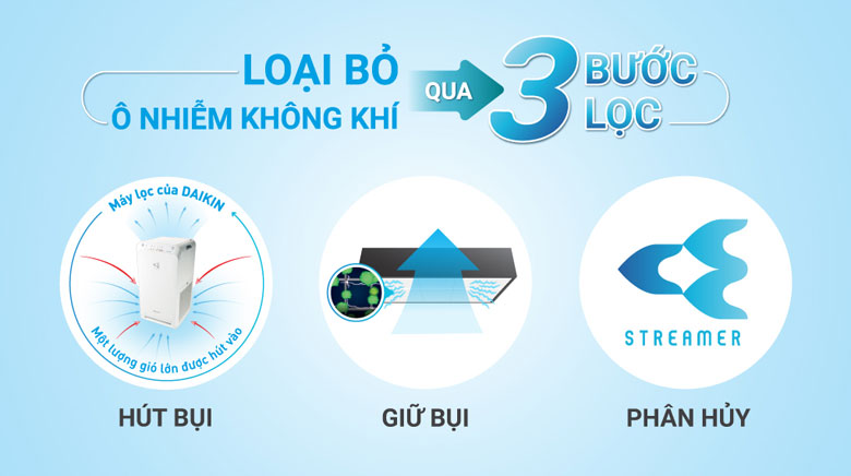 – Sử dụng công nghệ Streamer của Daikin để phân hủy các chất có hại bám trên phin lọc bằng oxy hóa.