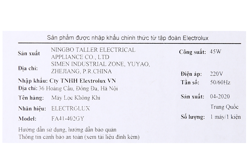 Máy lọc không khí Electrolux FA41-402GY sang đẹp, lọc hiệu quả, an toàn, tiết kiệm điện tốt, thương hiệu uy tín đáng tin chọn.