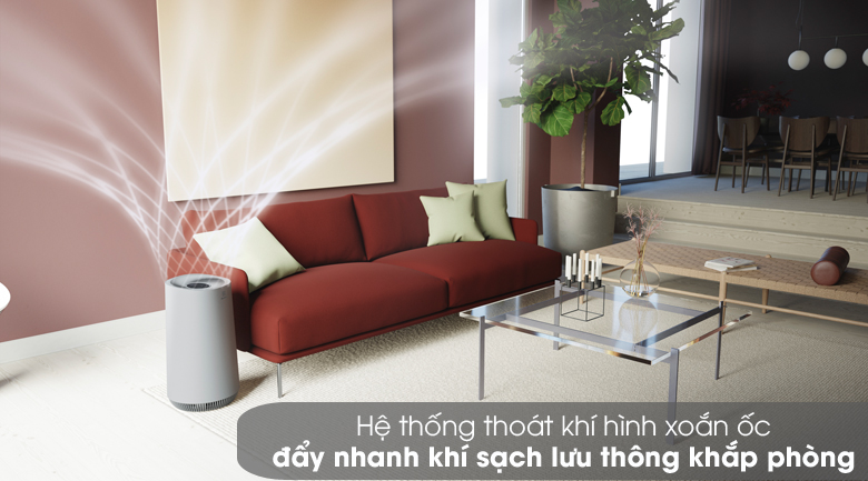Thiết kế khe thoát khí hình xoắn ốc giúp lượng không khí sạch sau lọc được lưu thông đều khắp phòng