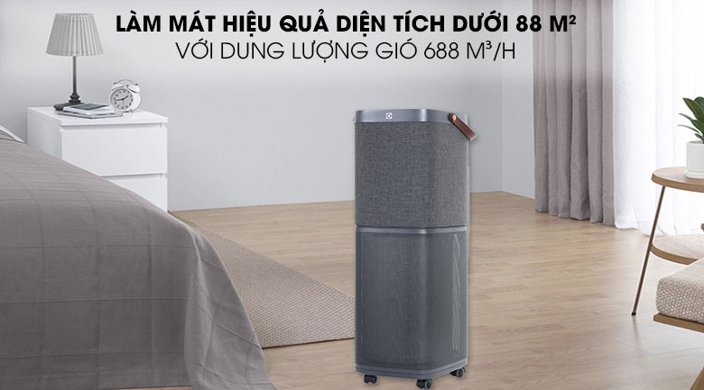 Dung lượng gió thổi ra 688 m³/h máy làm mát các loại phòng khách, phòng ngủ có diện tích khoảng 88m²