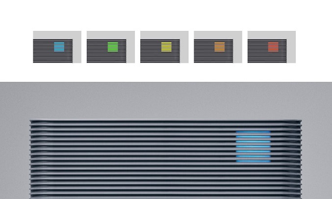 Bạn dễ dàng theo dõi chất lượng không khí thông qua màn hình LED màu. Màn hình LED màu cho biết chất lượng không khí trong phòng dựa trên 5 cấp độ khác nhau, với số đèn LED theo dõi mức độ của các hạt bụi mịn PM2.5 và TVOC (các hợp chất hữu cơ dễ bay hơi) trong phòng.
