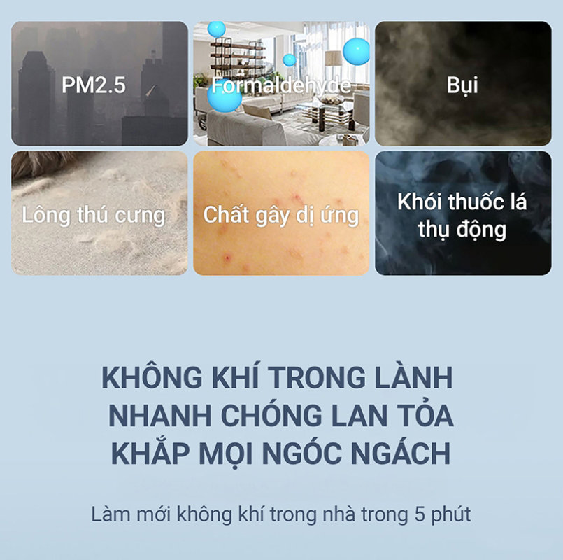 Sở hữu công suất 50W, CADR lên đến 320m³/h, phù hợp cho các không gian có diện tích lên đến 40m² như phòng ngủ, phòng khách… Mức công suất này giúp máy lọc Lumias Bulma Lite làm mới không khí trong phòng chỉ tốn 5 phút, loại bỏ bụi bẩn, bụi mịn PM2.5, lông thú cưng, khói thuốc lá, các chất gây dị ứng. Ngoài ra, CADR Formaldehyde ở mức 120m³/h giảm mùi hôi và Formaldehyde, mang lại không gian sống trong lành.