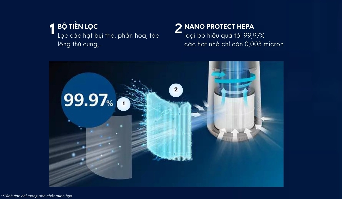 Bộ lọc Nano Protect HEPA loại bỏ đến 99,97% các hạt không nhìn thấy trong không khí