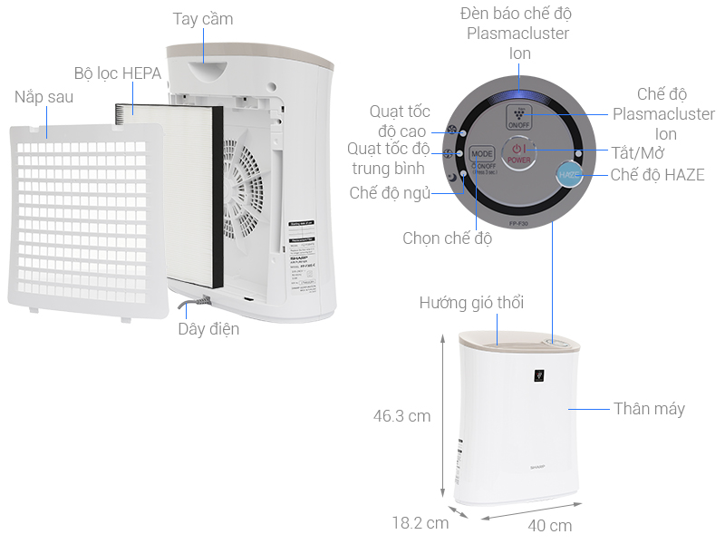Máy lọc không khí Sharp FP-F30E-C có khả năng thải phóng Plasmacluster ion mật độ cao để tiêu diệt nấm mốc, vi khuẩn và các tác nhân gây bệnh khác. Đồng thời ngăn ngừa sự phát triển của chúng trong không khí và giúp khử sạch các mùi hôi khó chịu như phấn hoa, thuốc lá, đảm bảo sức khỏe cho cả nhà.