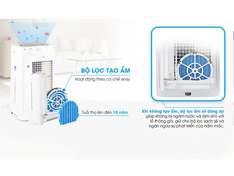 Cấu trúc bộ lọc hoạt động theo cơ chế xoay. Khi tạo ẩm, bộ lọc ẩm sẽ dừng lại không bị ngâm nước và làm khô với thông gió, do đó giữ cho bộ lọc sạch sẽ và ngăn ngừa sự phát triển của nấm mốc.