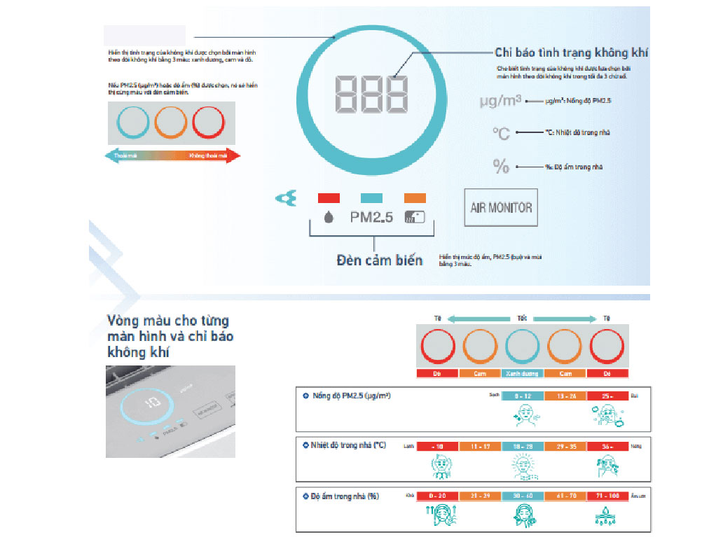 Điều này giúp người dùng dễ dàng theo dõi chất lượng không khí trong không gian và có biện pháp xử lý kịp thời.