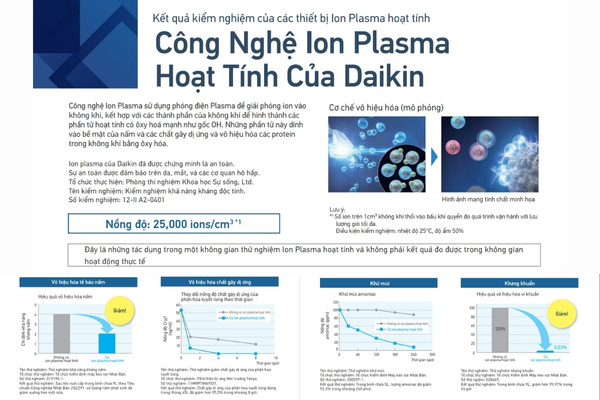 - Công nghệ Ion Plasma – Vô hiệu hóa: Daikin MCK555AVMV sẽ tạo ra một lượng lớn các hạt ion hoạt tính với nồng độ cao và tốc độ phóng gấp 1000 lần so với thông thường, để vô hiệu hóa các yếu tố gây hại. Chúng sẽ bị giữ lại ở Phin lọc của thiết bị và sau đó bị phân hủy hoàn toàn bởi Streamer, trả lại cho bạn bầu không khí trong lành và tinh khiết.