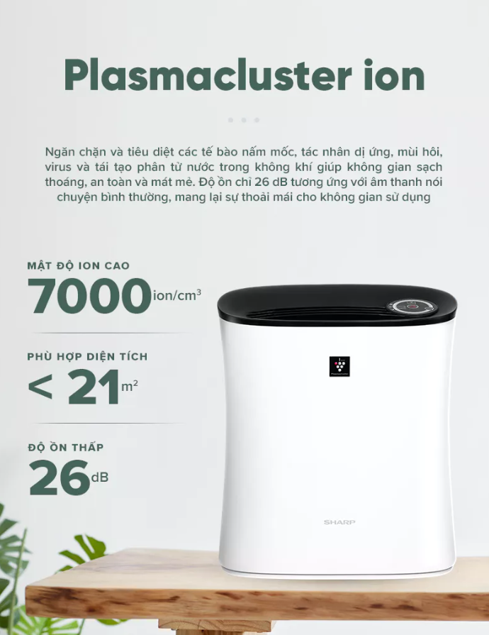 - Công nghệ Plasmacluster ion loại bỏ vi khuẩn, nấm mốc, mùi hôi hiệu quả