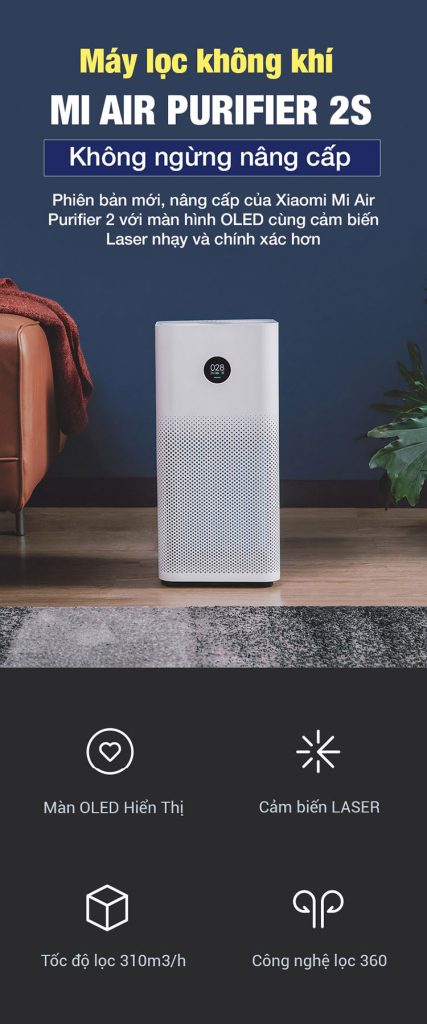 Không ngừng nâng cấp từ những bản cũ – Máy lọc không khí Xiaomi Mi Air Purifier 2S với phiên bản mới, nâng cấp của Xiaomi Mi Air Purifier 2 với màn hình OLED cùng cảm biến Laser nhạy và chính xác hơn bản cũ.