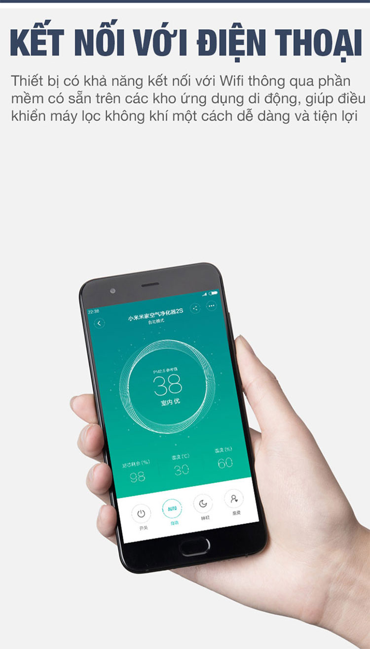 Thiết bị có khả năng kết nối với Wifi thông qua phần mềm có sẵn trên kho ứng dụng di động. Giúp điều khiển máy lọc không khí một cách dễ dàng và tiện lợi.