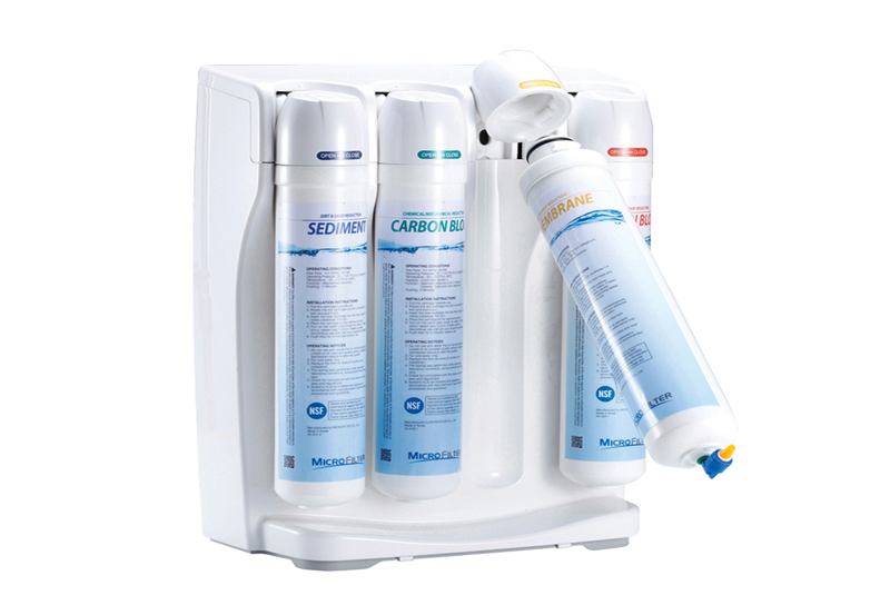 • Hệ thống lọc RO 4 cấp với lõi lọc nguyên khối