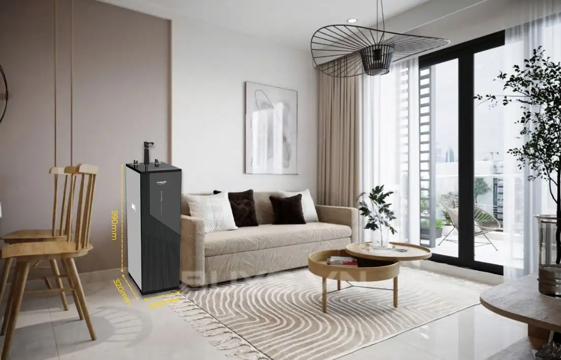 Máy lọc nước nóng lạnh Kangaroo Messi Hydrogen KG10A20 với thiết kế tủ đứng slim nhỏ gọn 320x400x990 mm với màu đen sang trọng, hiện đại phù hợp đặt tại bất cứ đâu trong ngôi nhà của bạn.