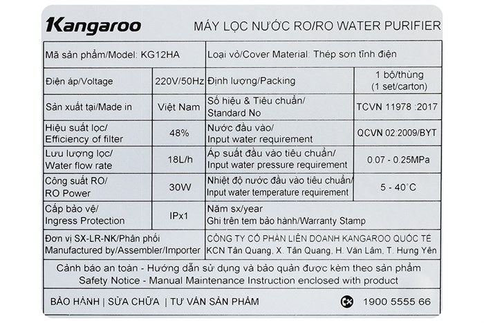 Máy lọc nước KG12HA của Kangaroo có thiết kế tủ đứng, một vòi và một van xoay lấy nước dễ dàng. Máy có công suất lọc 18 lít/giờ với dung tích bình chứa 7 lít phù hợp cho gia đình 4- 6 người.