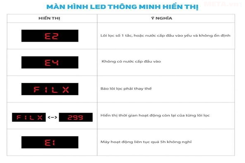 Bên cạnh công nghệ lọc hiện đại, máy còn được trang bị thêm chức năng báo thay lõi, báo nước cấp yếu thuận tiện cho người sử dụng.