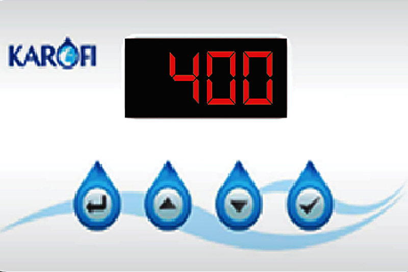 Bảng đèn Led hiển thị chi tiết thời gian còn lại thay thế của từng lõi và đồng hồ Led hiện lên số cụ thể thông báo thời gian dự kiến thay lõi cho máy lọc nước.
