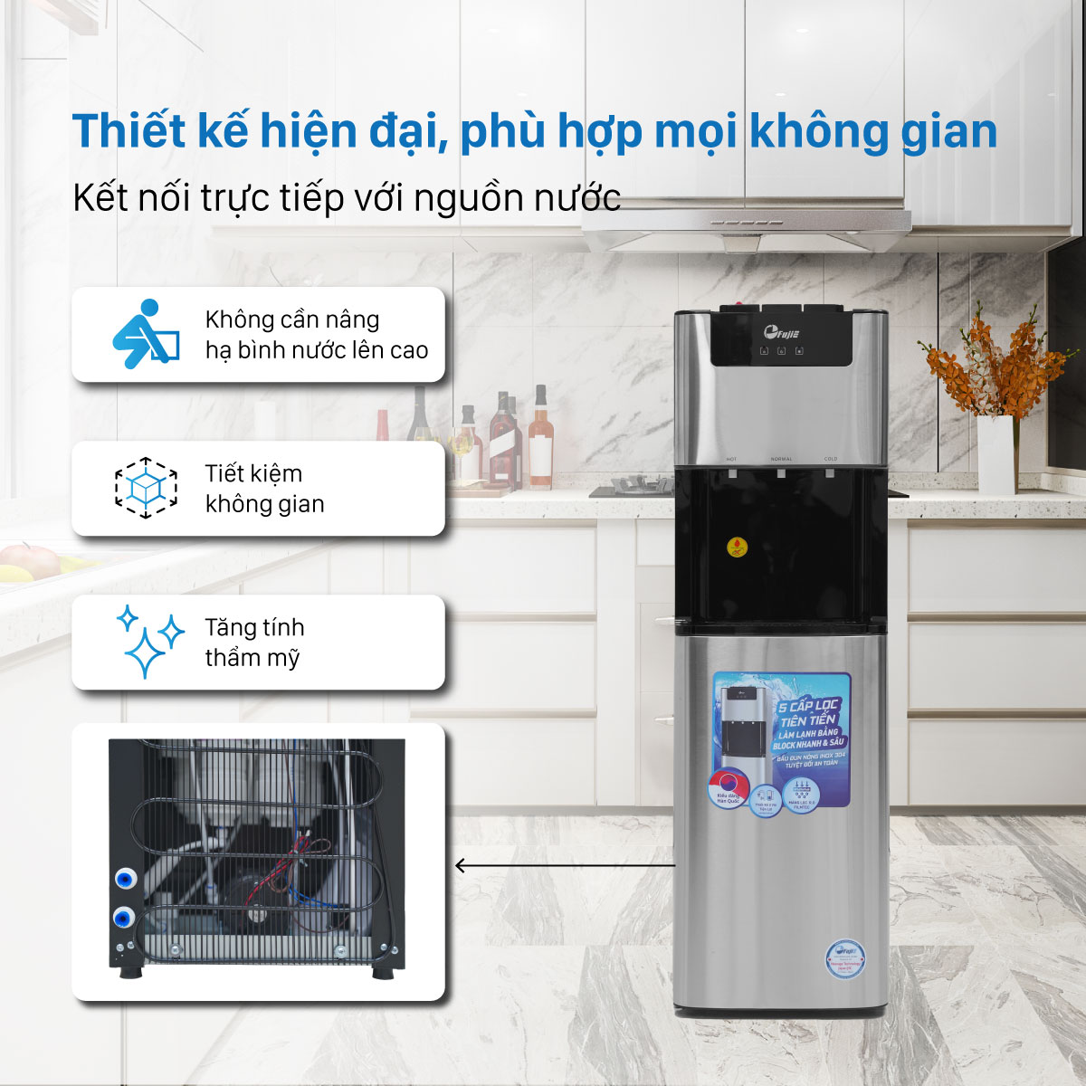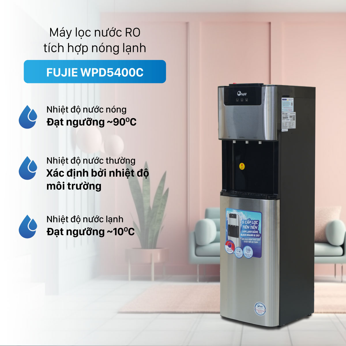 Máy lọc nước RO FujiE WPD5400C có thiết kế tinh tế và hiện đại, phù hợp với mọi không gian sử dụng. Với 3 vòi nước nóng, lạnh và thường, người dùng có thể lấy nước ngay lập tức để pha trà, cà phê hay sữa mà không phải mất thời gian chờ đợi. Đặc biệt, máy còn có vỏ ngoài siêu bền và dễ dàng vệ sinh, mang lại tính thẩm mỹ cao cho không gian của bạn.