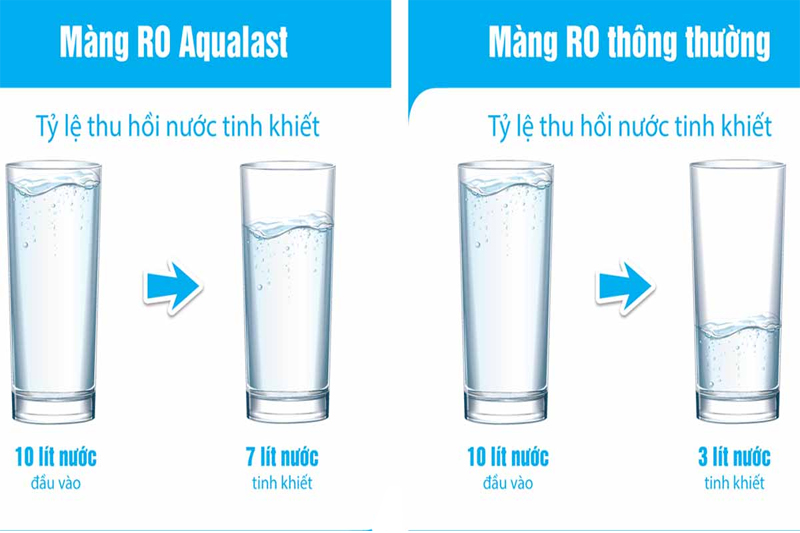 Máy lọc nước Karofi là một trong những sản phẩm đầu tiên tại Việt Nam sử dụng màng RO Aqualast của Dow Filmtec – Thương hiệu màng RO hàng đầu về uy tín, chất lượng trên thế giới giúp gấp đôi hiệu năng sử dụng. Nhờ vậy, tỷ lệ thu hồi nước tinh khiết cao vượt trội tới 70%, tăng 230% lượng nước tinh khiết thu được so với màng lọc RO thông thường.