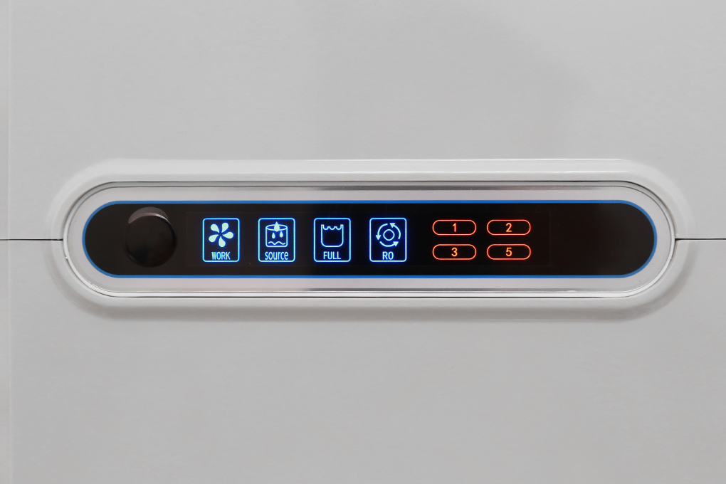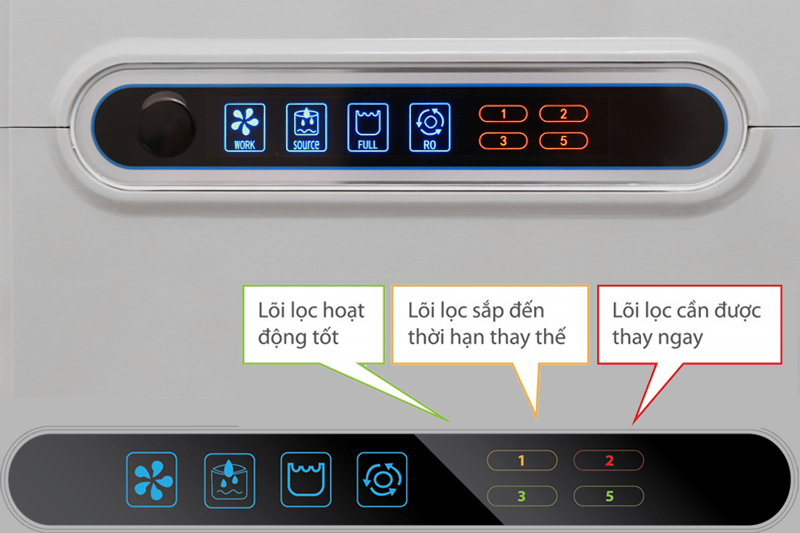 Bảng điều khiển điện tử hiện đại với màn hình Led hiển thị, chứa đầy đủ thông tin cần thiết để người dùng theo dõi và kiểm tra tình trạng máy lọc