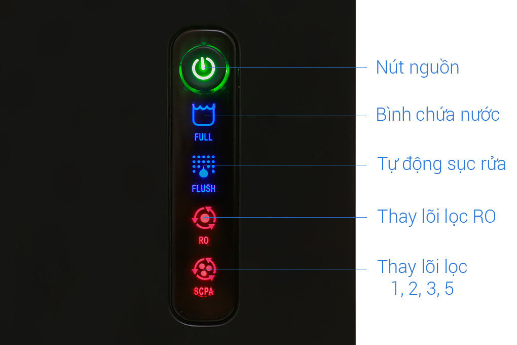 Hệ thống hiển thị tình trạng lõi lọc giúp người dùng dễ theo dõi và thay mới lõi lọc đến hạn