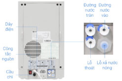 Máy lọc nước có công suất lọc 10 lít/giờ, thiết kế với 2 bình cấp nước, cấp nước sử dụng thông qua 1 vòi lấy nước