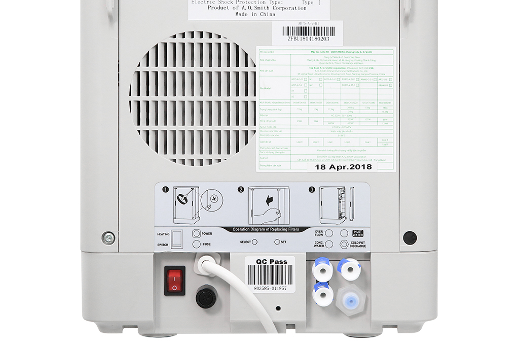 Hệ thống điện tử chuyên dụng của AOSMITH kết hợp với máy lọc qua cổng USB cung cấp thông tin giúp: cảnh báo thay lõi, tự động sục rửa màng lọc, van điện từ tích hợp để kiểm soát tình trạng cấp nước…