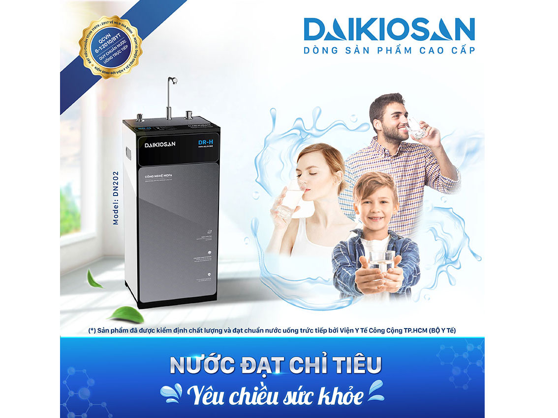 Máy lọc nước RO Dr.H 3D Daikiosan DN202 được trang bị 2 lớp bảo vệ an toàn, bao gồm cảm biến điện và cảm biến nhiệt giúp máy hoạt động ổn định và an toàn. Sản phẩm đạt các tiêu chuẩn quốc gia về chất lượng nước uống như QCVN 01:2009/BYT, QCVN 6-1:2010/BYT và TCVN 11978:2017. Máy được giám sát chất lượng bởi Viện Y tế Công cộng TP.HCM, đảm bảo mỗi giọt nước đều an toàn cho sức khỏe người tiêu dùng.
