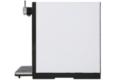 Với thiết kế này bạn sẽ không còn phải khoan cắt bàn đá, chậu rửa, hoặc tìm một không gian để lắp vòi nữa, mà có thể lắp đặt máy ở mọi vị trí, góp phần giúp không gian phòng hiện đại, sang trọng hơn. Phía trước máy còn có khay để cốc kết hợp hứng nước thừa giữ khu vực xung quanh máy sạch sẽ hơn.