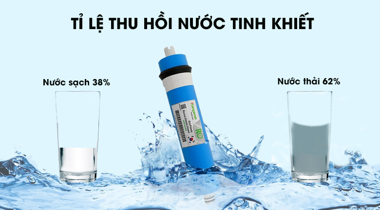 Máy có tỷ lệ lọc – thải là 38/62 thu hồi 38% nước tinh khiết