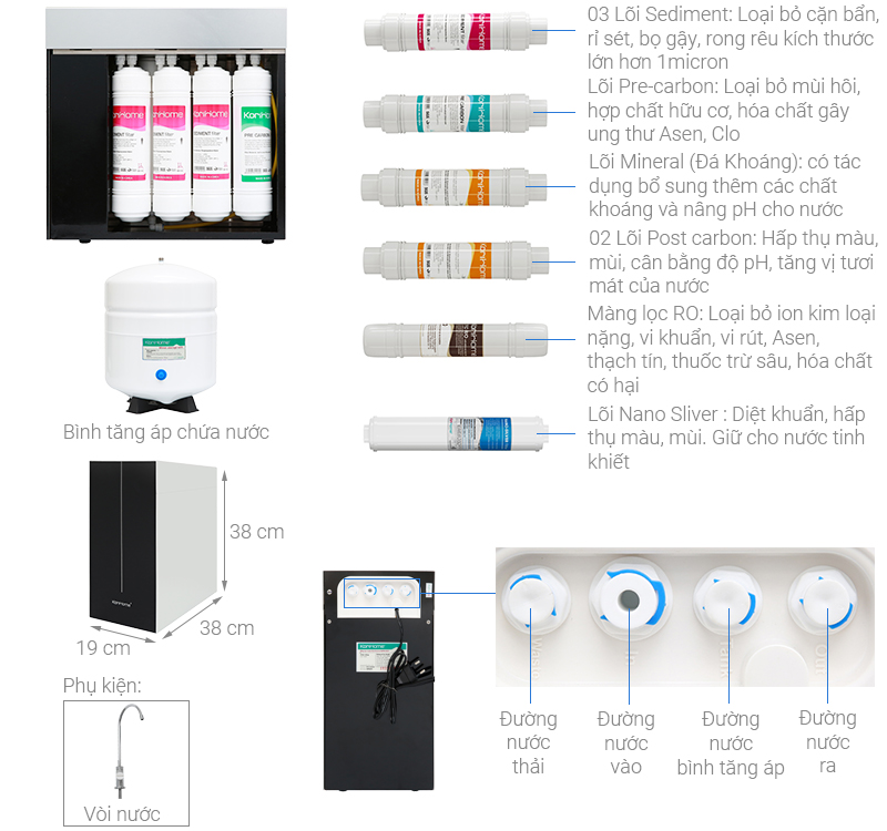 – Lõi Post Carbon thay lõi sau 12 tháng dùng.