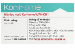 Máy lọc nước RO Korihome WPK-K91 9 lõi sản xuất tại Việt Nam, sử dụng lõi lọc nhập khẩu từ Hàn Quốc cho hiệu quả lọc nước cao, sử dụng tiện lợi, giá tốt.
