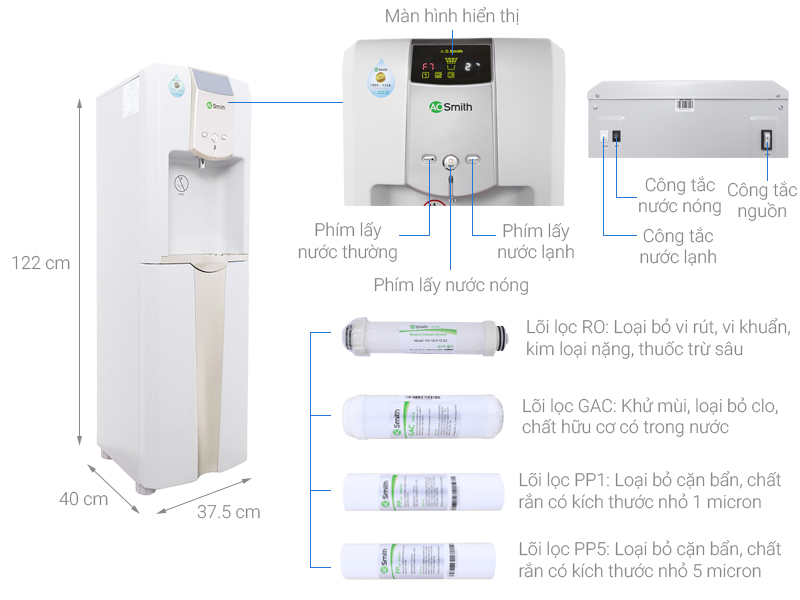Máy lọc nước AOSmith dùng riêng lõi, không sử dụng chung lõi lọc nước của các hãng khác, người dùng có thể gọi 1800.1228 (tổng đài AOSmith) khi cần tư vấn chọn mua, hỗ trợ thay thế lõi lọc nước.