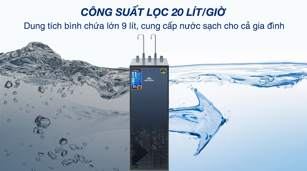 – Máy lọc nước có công suất lọc 20 lít/giờ và dung tích bình chứa 9 lít (nước nóng 1 lít, nước lạnh 1.5 lít, nước thường 6.5 lít), đảm bảo cung cấp đủ nguồn nước tinh khiết cho gia đình bạn.