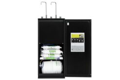 – Máy lọc nước RO Hydrogen thiết kế dạng tủ đứng được phủ kính tràn viền hiện đại, màu đen thanh lịch, sang trọng, phù hợp cho không gian phòng khách, phòng bếp, văn phòng,…