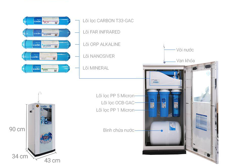 – Lõi 8: Nano Silver – chống tái nhiễm khuẩn nước trong hệ thống, bổ sung khoáng chất và chất điện giải, nâng cao pH giúp trung hòa acid làm cơ thể khỏe hơn.