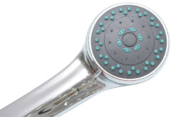 Vòi sen được làm từ chất liệu kim loại mạ crom cao cấp, sáng bóng đẹp mắt, dễ vệ sinh và có tính năng chống khuẩn. (Xem thêm Công dụng của vòi sen chống khuẩn). Khi sử dụng, người dùng có thể điều chỉnh 5 cường độ tia nước phun ra, để chọn mức độ nước phù hợp và thoải mái nhất.