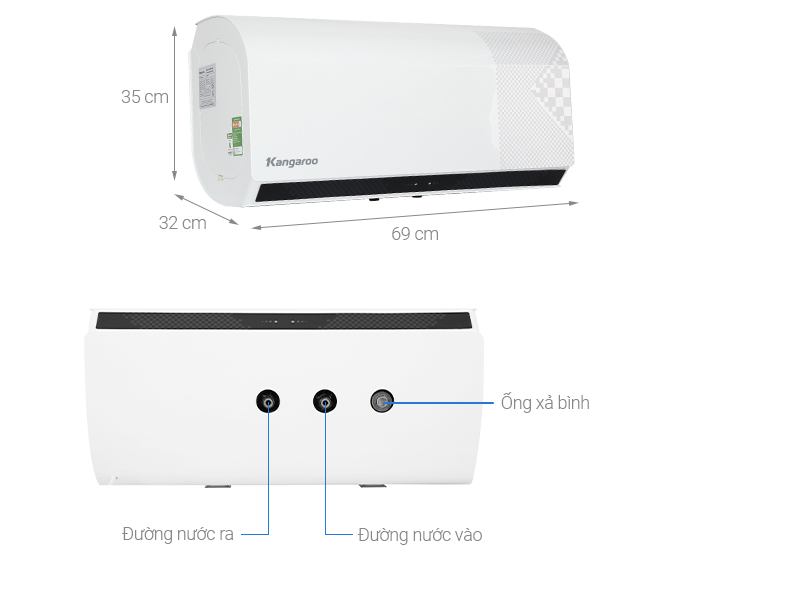 Máy nước nóng Kangaroo có hệ thống làm nóng gián tiếp với bình chứa đến 30 lít, công suất 2500W, đáp ứng tốt nhu cầu sử dụng nước nóng cho những gia đình có từ 3 – 5 thành viên.