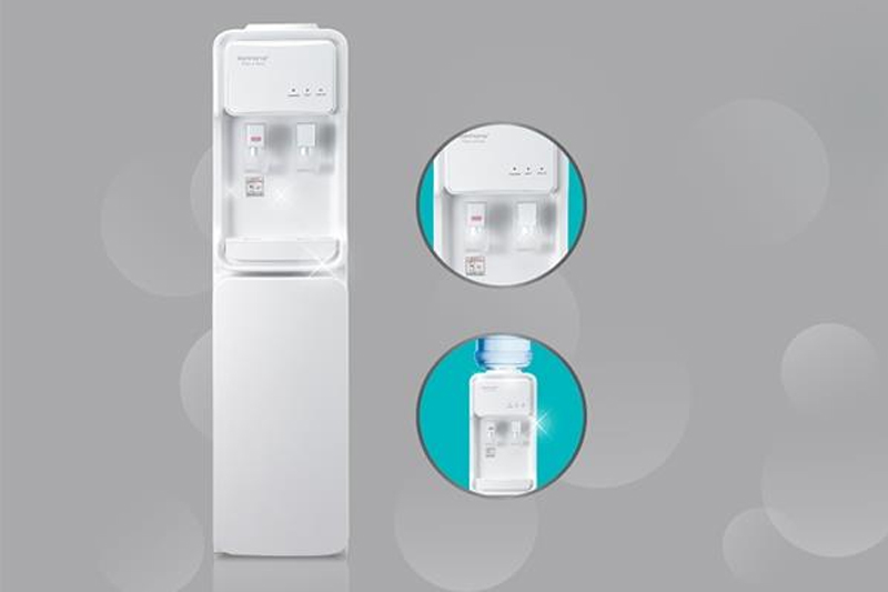Máy nước nóng lạnh Korihome WDK-855 màu trắng kiểu dáng tinh tế, dạng đứng dễ dàng nhận biết lượng nước còn hay hết. Dễ dàng trưng bày tại các khu vực phòng khách, văn phòng đẹp và sự dụng 100% số nước trong bình với bình úp.