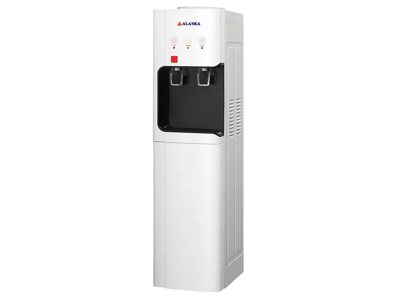Cây nước nóng lạnh Alaska R-82 sử dụng bình nước úp, gồm 2 vòi lấy nước nóng và nước lạnh.