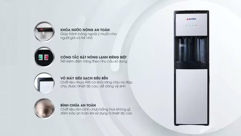 Máy nước uống nóng lạnh Alaska RL-99 hoạt động công suất lớn, mang lại cho bạn nguồn nước uống nóng lạnh liên tục cho mục đích sử dụng khác nhau. Máy nước uống nóng lạnh RL-99 sẽ thích hợp cho nhu cầu sử dụng nước nóng lạnh ở hộ gia đình các công ty, nhà hàng, hay trường học…Phân phối chính hãng bởi Alaska.
