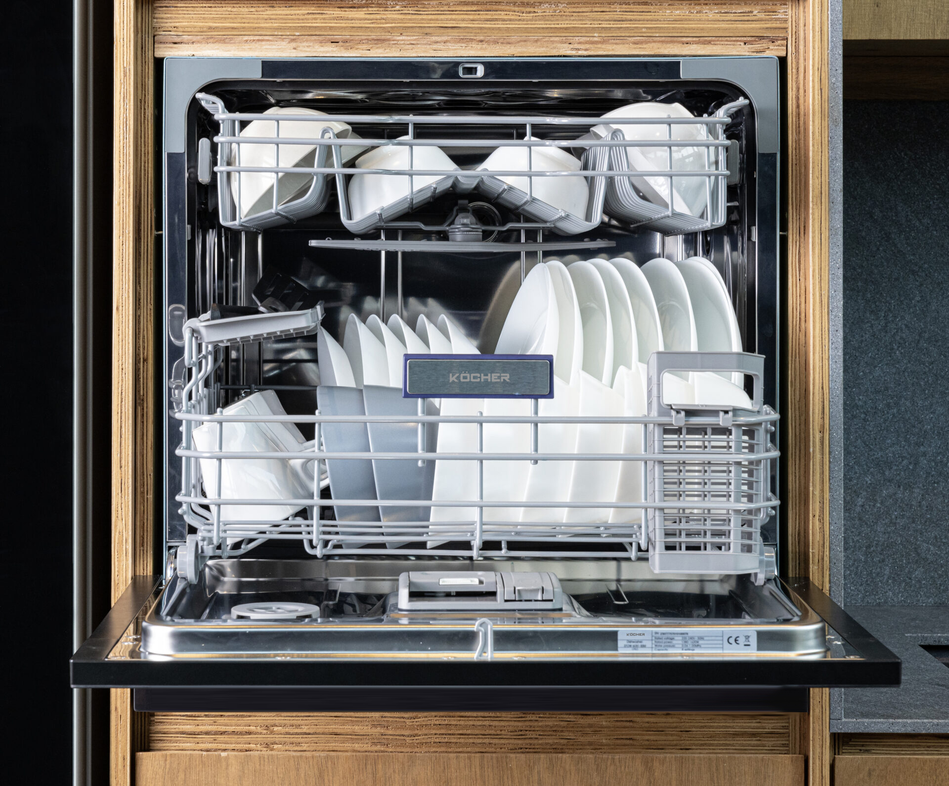 Ở phía trong bên của máy rửa bát Kocher X10 PRO có chứa ngăn chứa muối và ngăn chứa các chất rác trong quá trình rửa. Người dùng cần dùng loại muối chuyên dụng cho máy rửa bát. Mỗi lần đổ muối sẽ dùng được khoảng 1,5 tháng đến 2 tháng. Khi hết lượng muối cần thiết, máy sẽ báo hiệu ở trên bảng điều khiển.