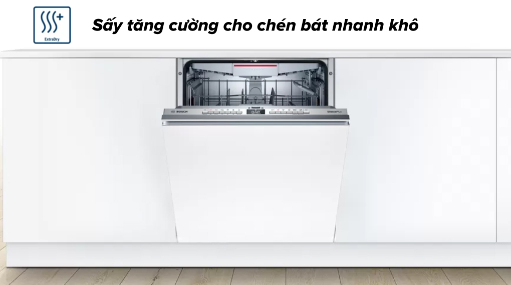 Máy rửa chén âm toàn phần Bosch SMV4ECX14E sẽ giúp bạn sấy khô phần chén dĩa đã được làm sạch, giúp bạn yên tâm sử dụng mà không lo nấm mốc, mùi hôi sinh sôi kể cả khi bạn để quên trong máy.