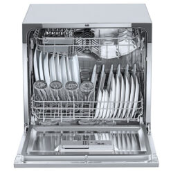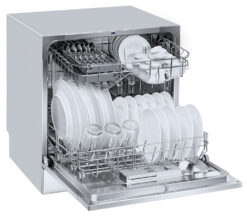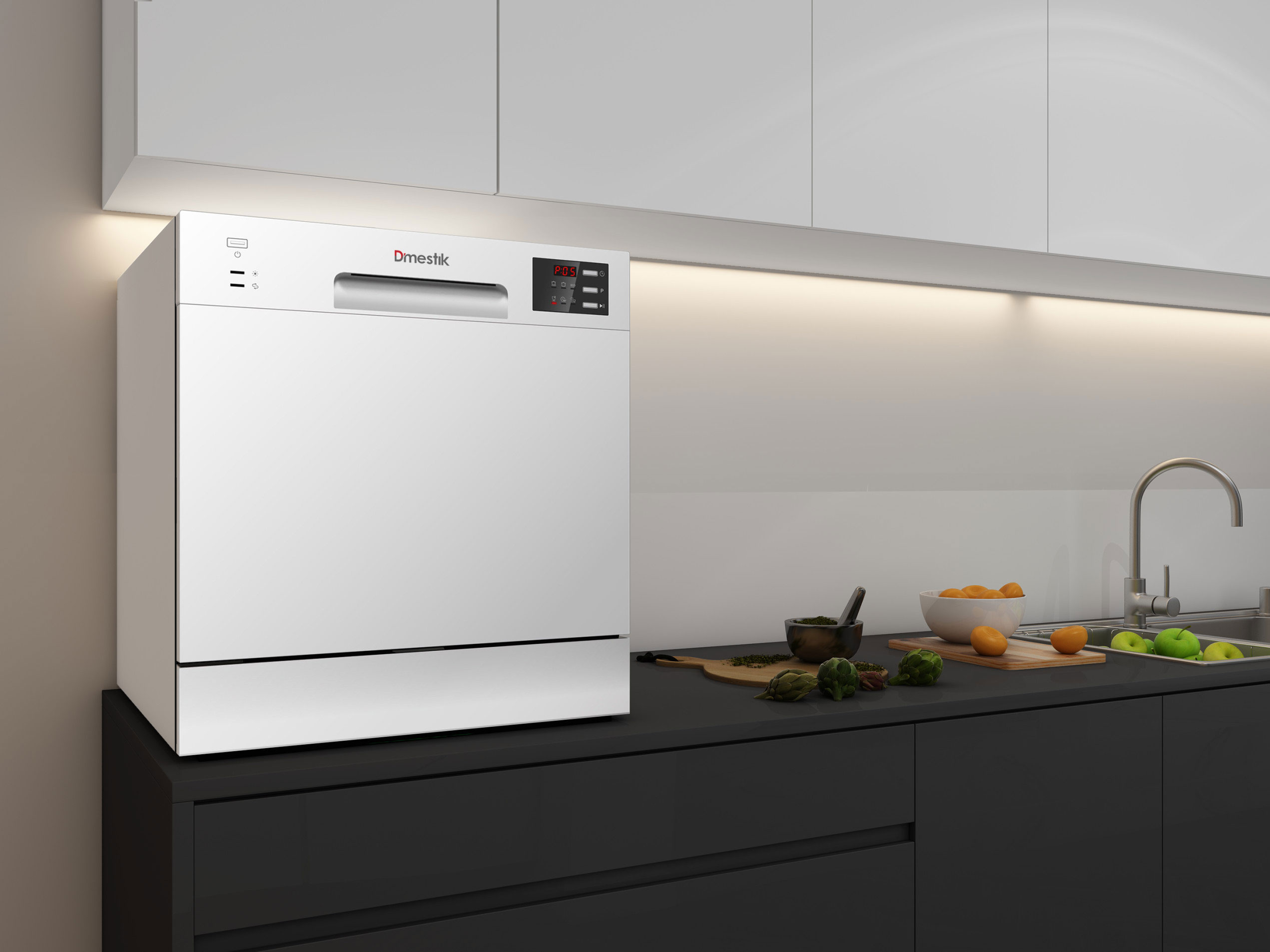 Máy rửa bát độc lập Dmestik ES 08-01 có thể đặt gọn gàng trên kệ bếp sử dụng cực kỳ sang trọng. Thân máy được làm bằng thép sơn tĩnh điện không bám bụi, không bám dấu vân tay.