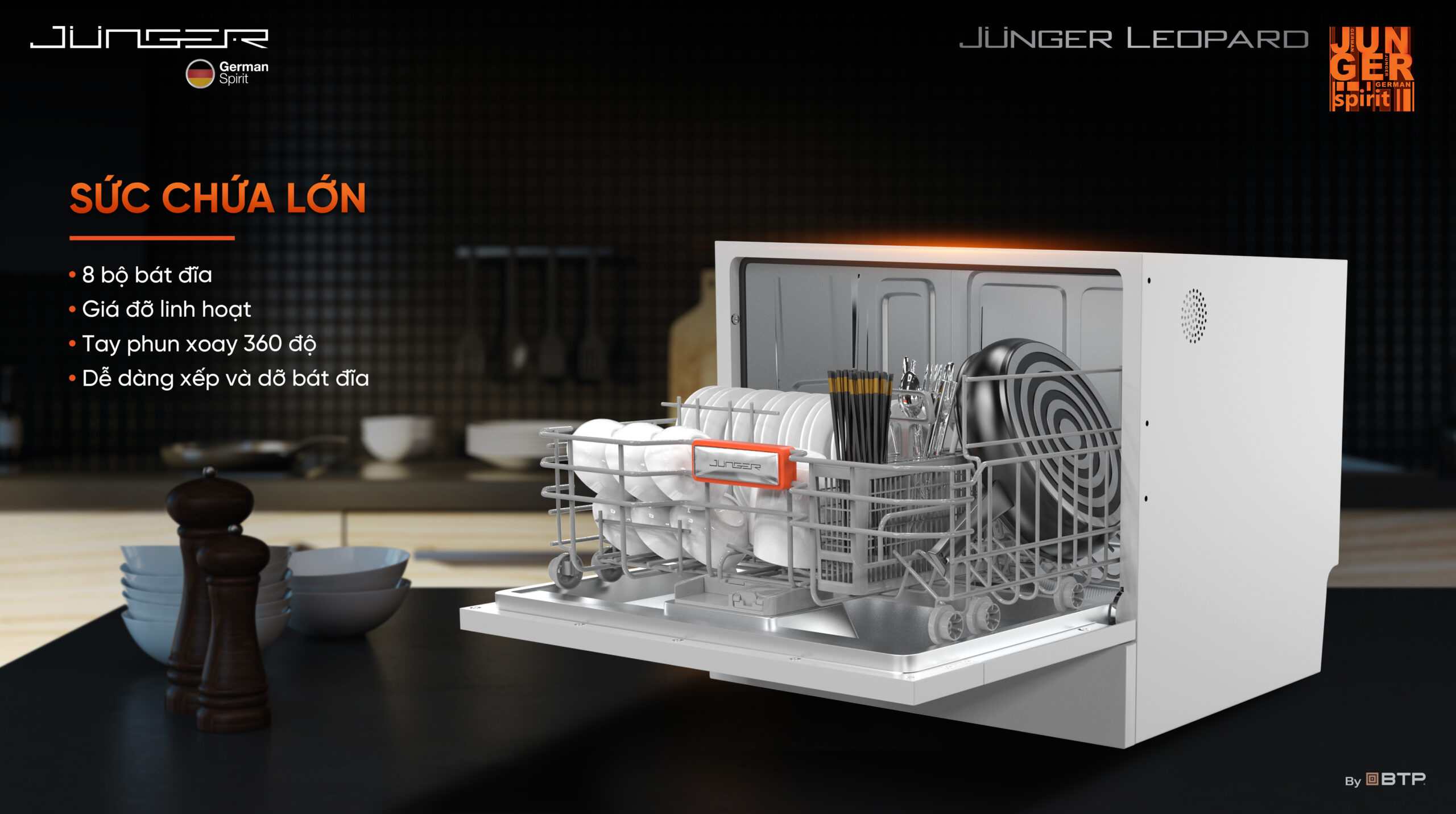 Máy rửa bát Junger Leopard DWJ-060 8 bộ – Gọn gàng tối ưu