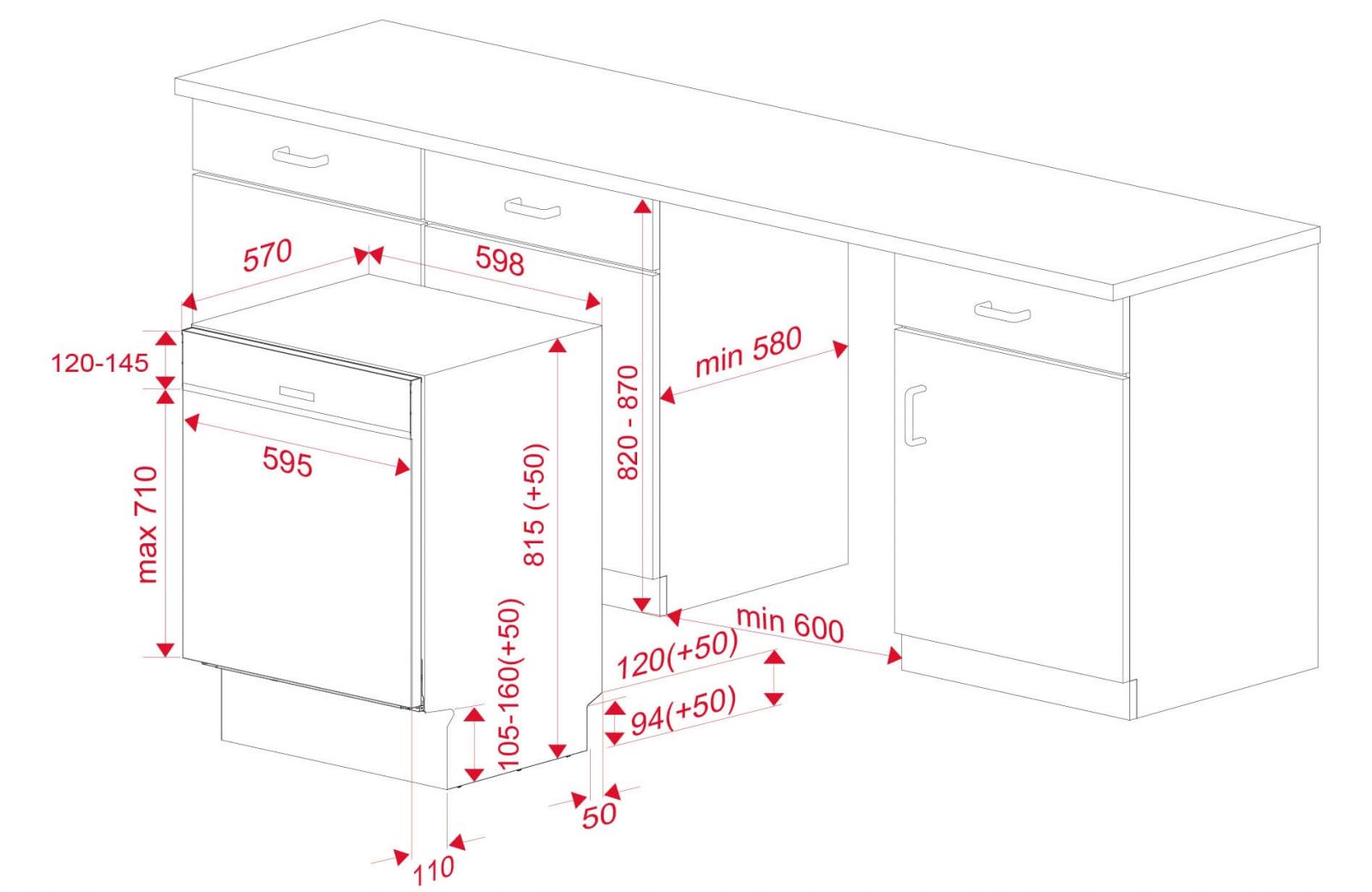 + Kích thước lắp đặt( cao x rộng x sâu): 820 – 870 x 600 x 580mm