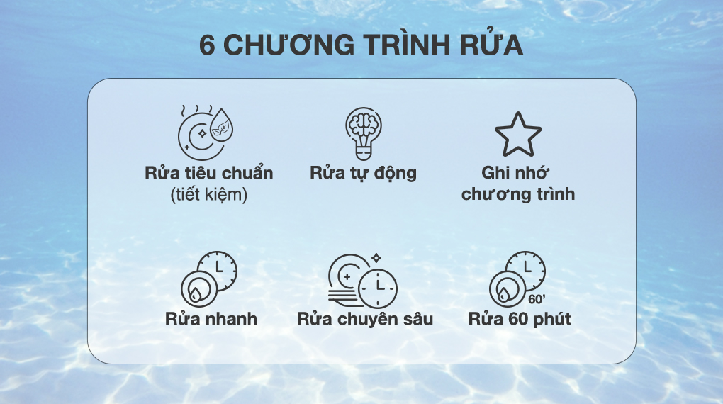 Đáp ứng nhu cầu rửa đa dạng với 6 chương trình rửa khác nhau