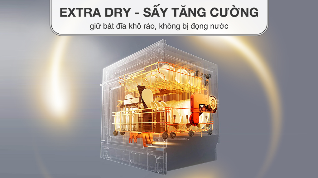 Nhờ có công nghệ Extra Dry luồng gió sẽ được đưa thêm vào trong các khoang rửa nhờ đó nhanh chóng làm khô chén dĩa, hạn chế tình trạng đọng nước gây nguy cơ cho vi khuẩn phát triển.